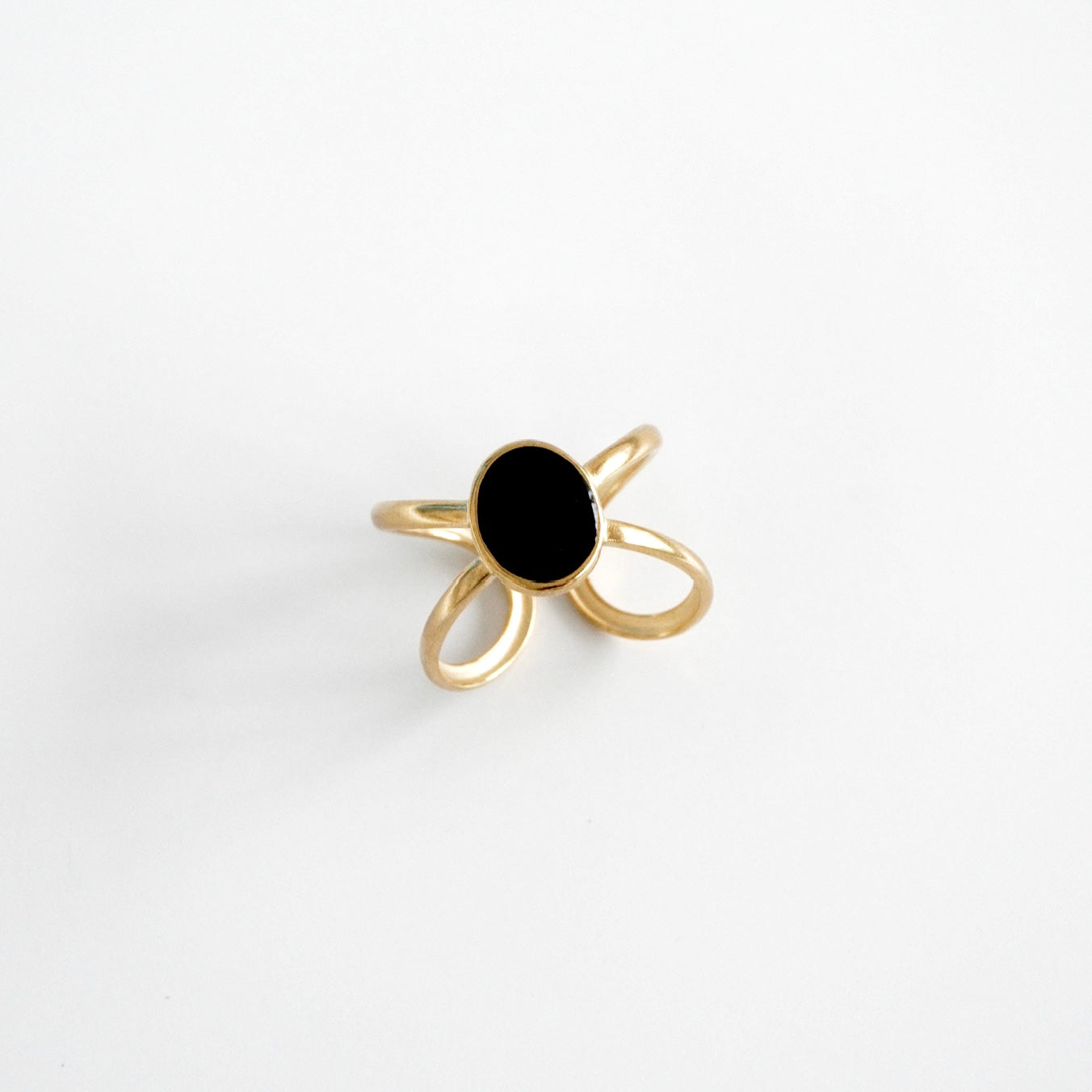 Anillo cruzado con piedra negra