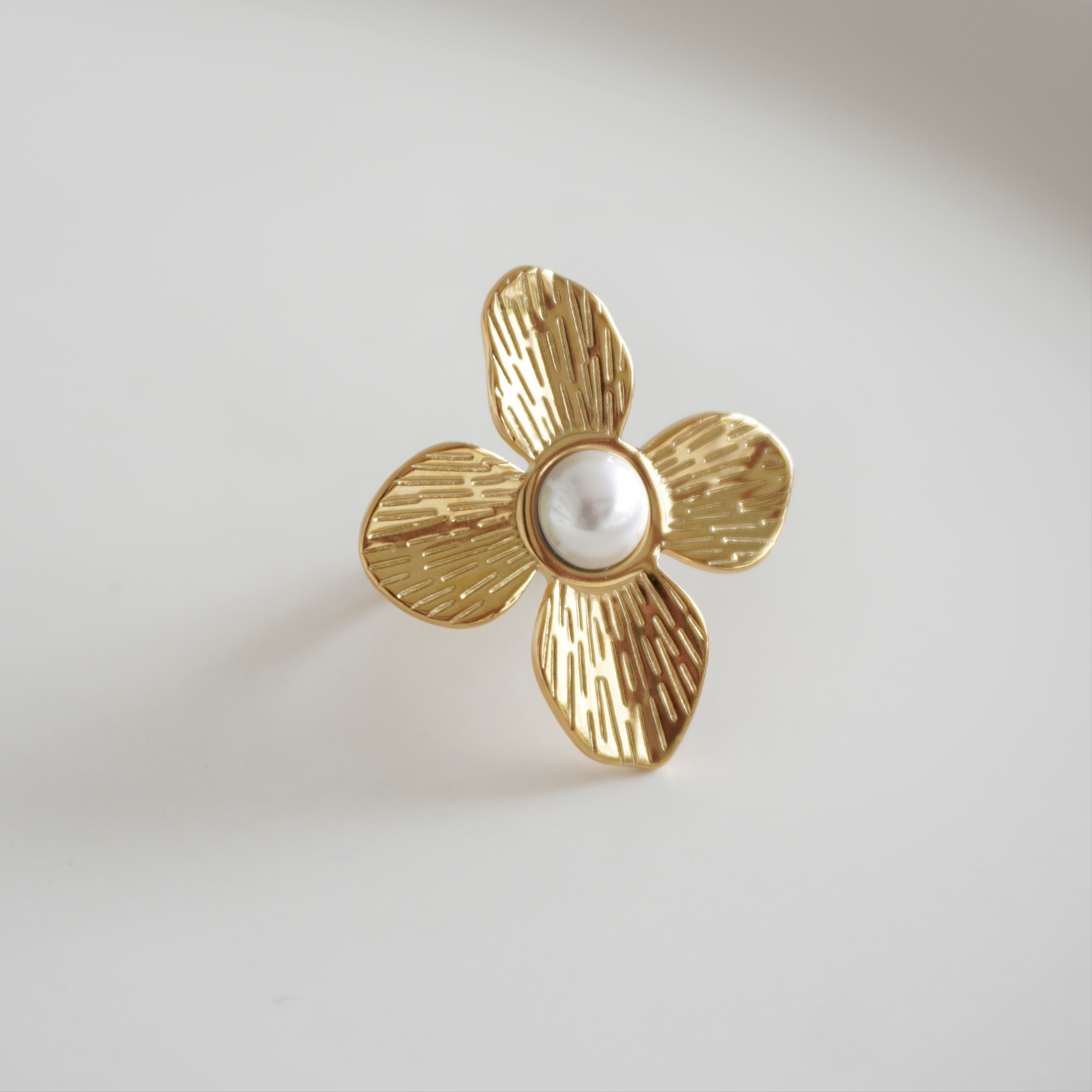 Anillo flor ajustable con perla
