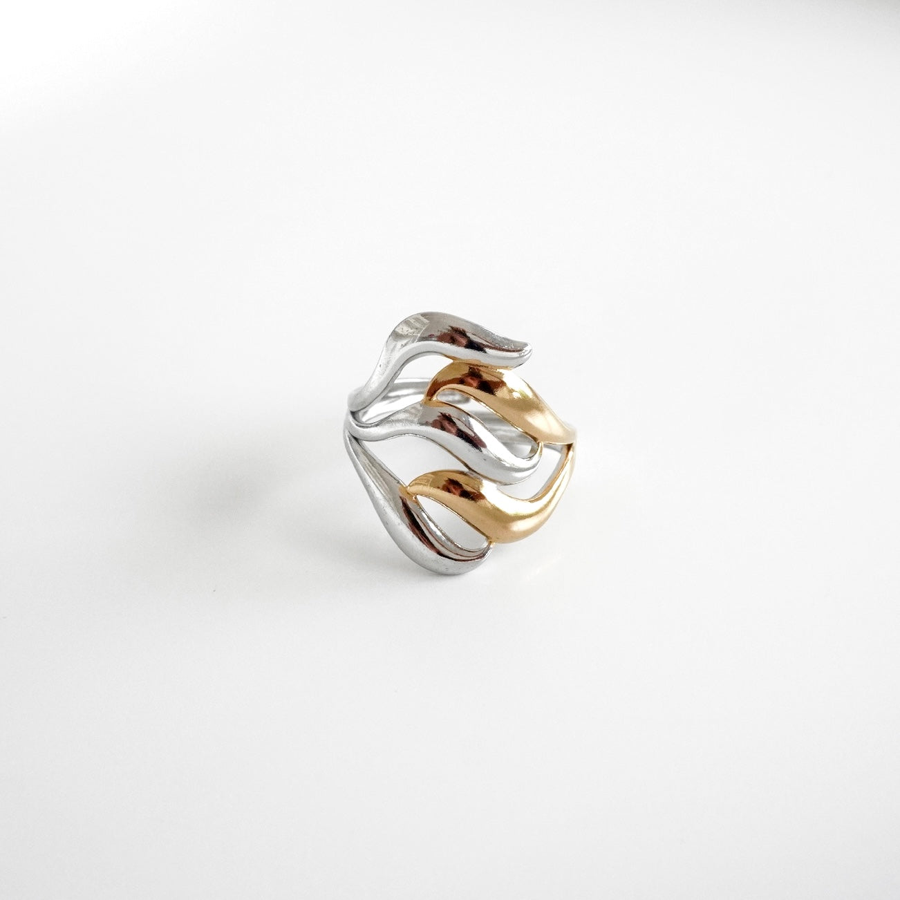 Anillo lineas curvas entrelazadas bicolor
