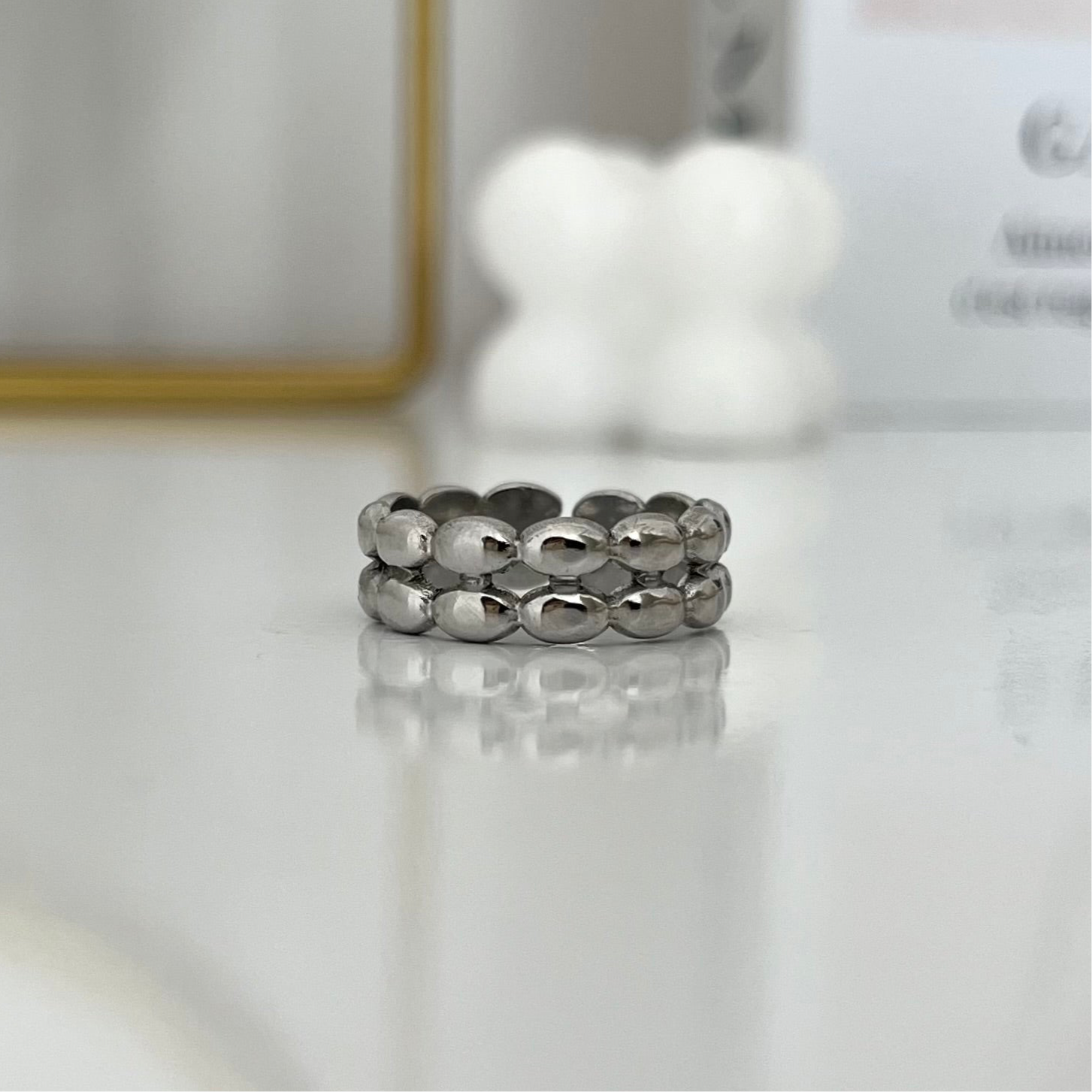 Anillo plateado doble fila