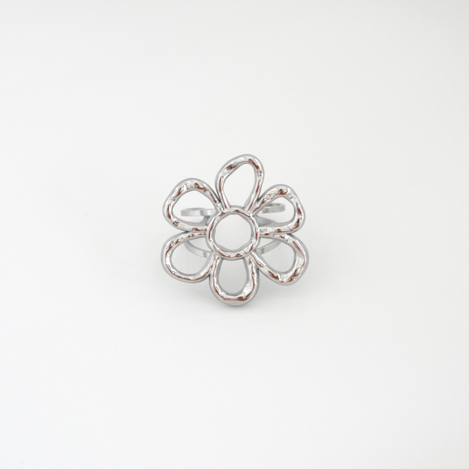 Anillo plateado flor chuncky