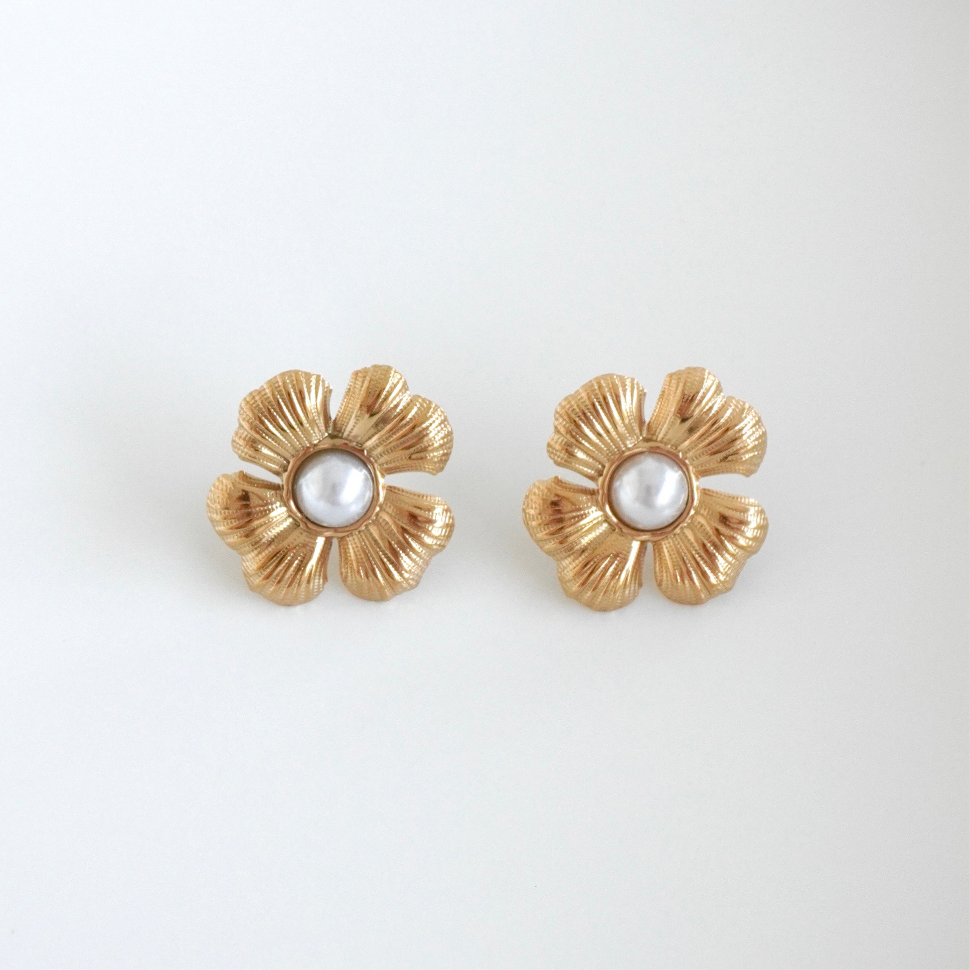 Aretes de flor con perla