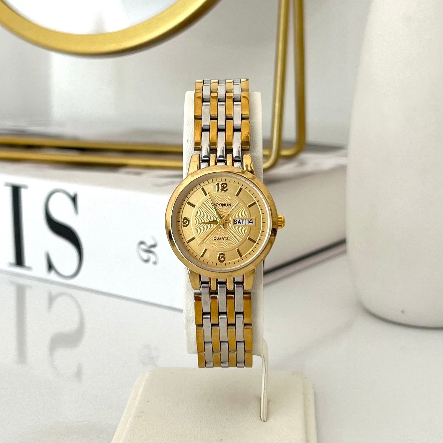 Reloj bicolor fondo amarillo